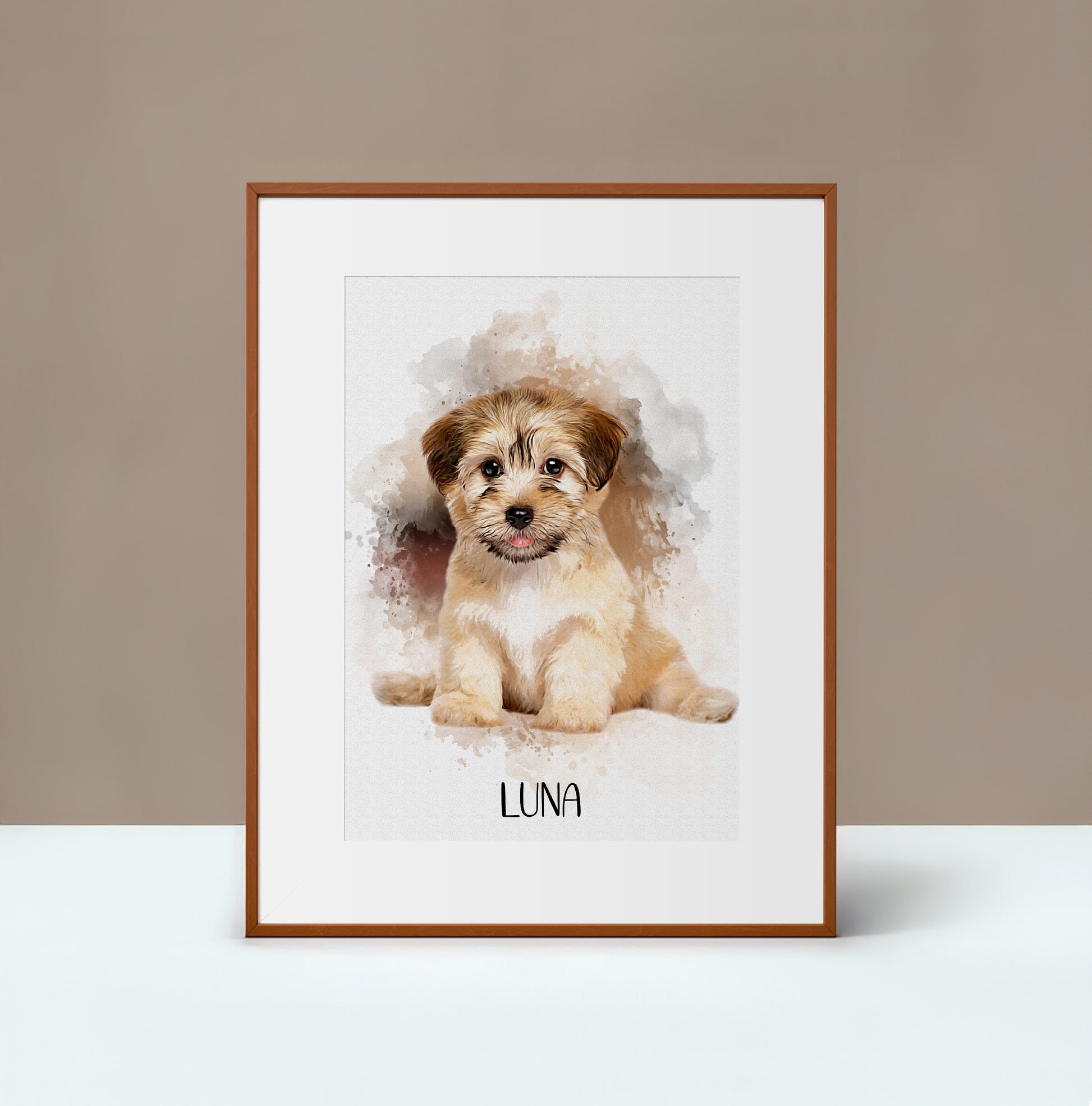 NOTE: All artworks are digitally printed on fine art paper/canvas (not hand-painted). Each portrait is digitally hand-painted in watercolor style, capturing your pet’s unique personality and charm. Whether it’s a dog, cat, rabbit, or horse, we bring their spirit to life with vibrant colors and delicate brushstrokes.